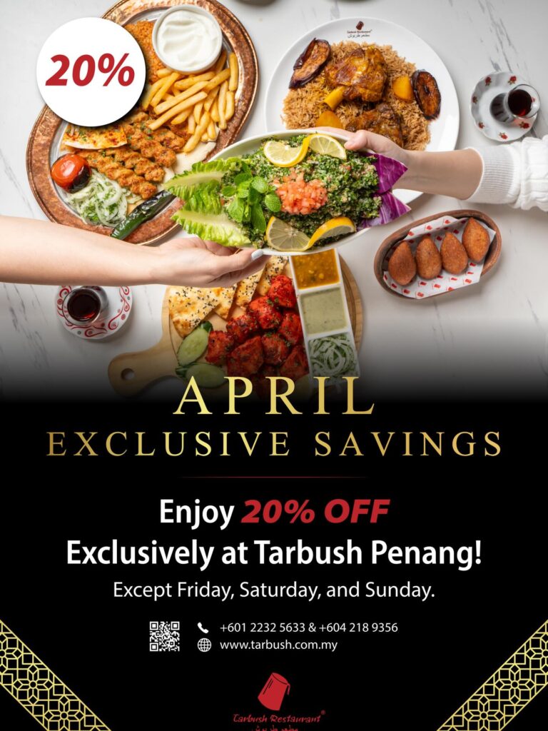 Weekday Dining Deal: Enjoy 20% OFF at Tarbush Penang This April
